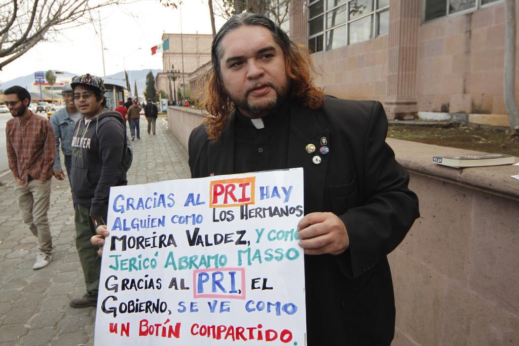 También, Según la misma publicación, el sacerdote de Saltillo usa en su sotana pines del Ché Guevara, personajes animados de South Park, serie que ha hecho ofensivas burlas contra Cristo, la Iglesia y el Papa; y se ha teñido su larga cabellera de azul y rojo. En protesta contra el capitalismo se pinta el rostro de blanco con el signo de dólares dibujado en el rostro con color negro.