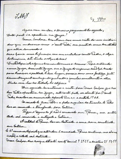El padre Malachi Martin afirmó que el Terecer Secreto de Fátima está escrito en UNA SOLA HOJA DE PAPEL; y habla sobre la Apostasía y el Falso papa. ¿Será este el verdadero Tercer Secreto?