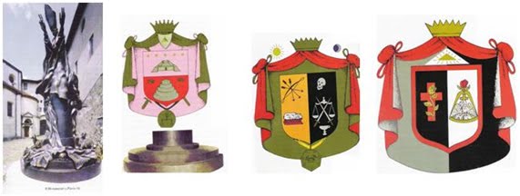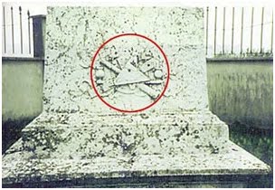 Coincidencia de las figuras en el monumento allí con emblemas de 16,17 y 18 grados de la masonería.