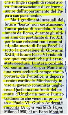 Nuestro último tramo de la traducción: "Expluso de Roma, durante el último año del pontificado de Pío XII, después de la muerte del Papa Pacelli y bajo la protección de Juan XXIII, Pablo VI restauró las relaciones futuras de las cuales estaba prohibido. El cordial según Montine comunismo es una opción real que te llevará como "Papa", para dar testimonio del Cardenal Mindszenty heroico que se oponían al gobierno comunista húngaro. "